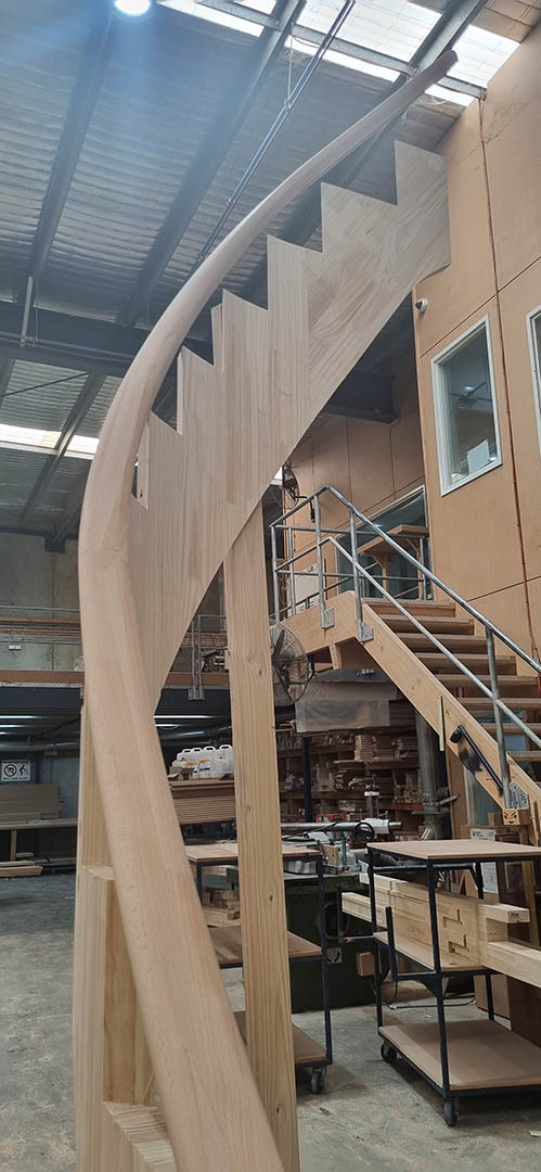 CNC machining plays a central role in production, with Biesse equipment selected for its strong local support and established presence within the Australian timber industry. To better manage complex and custom stair designs, Staircon was integrated into the workflow in 2022.